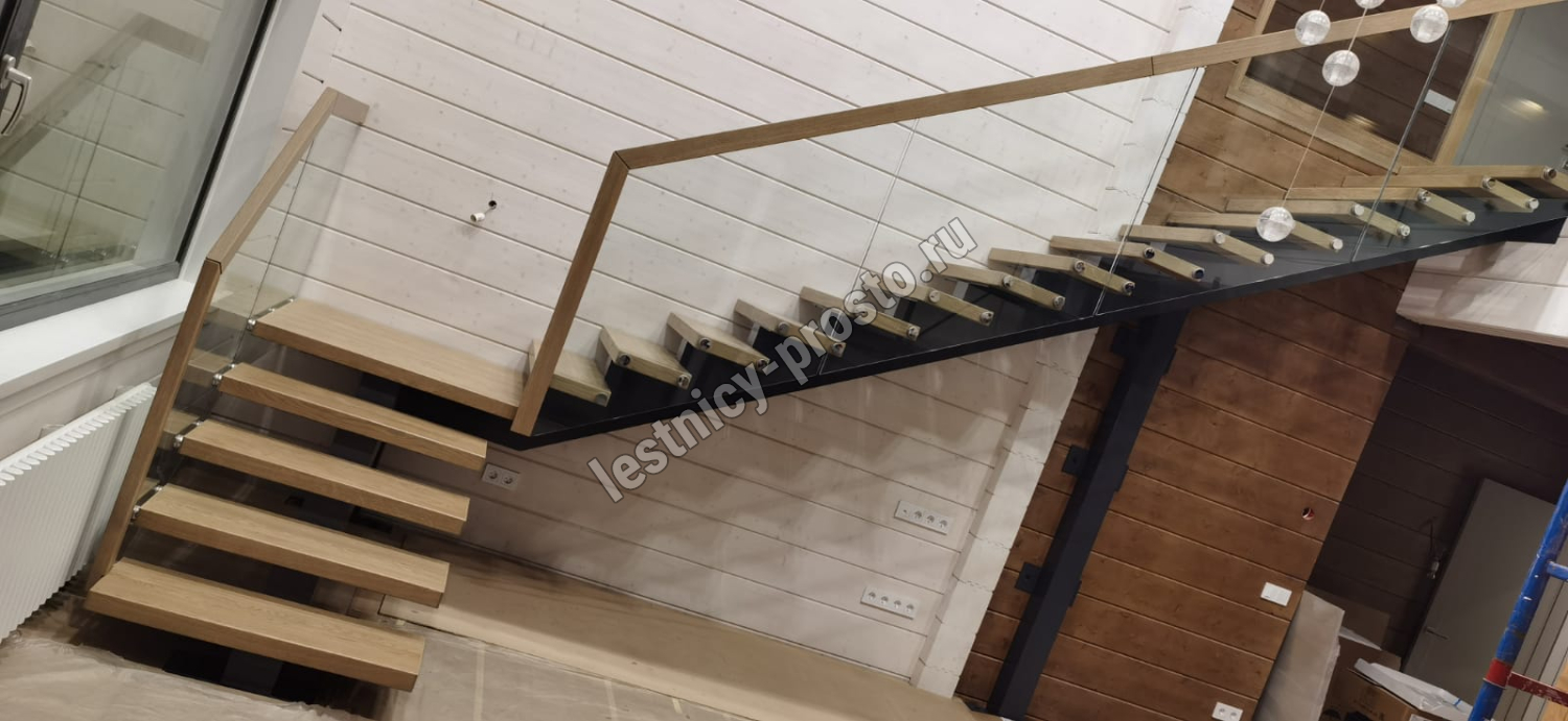 Ступени и поручень выполнены из цельноламельного ясеня категории АВ.