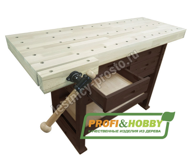 • Столешница и тиски выполнены из массива берёзы