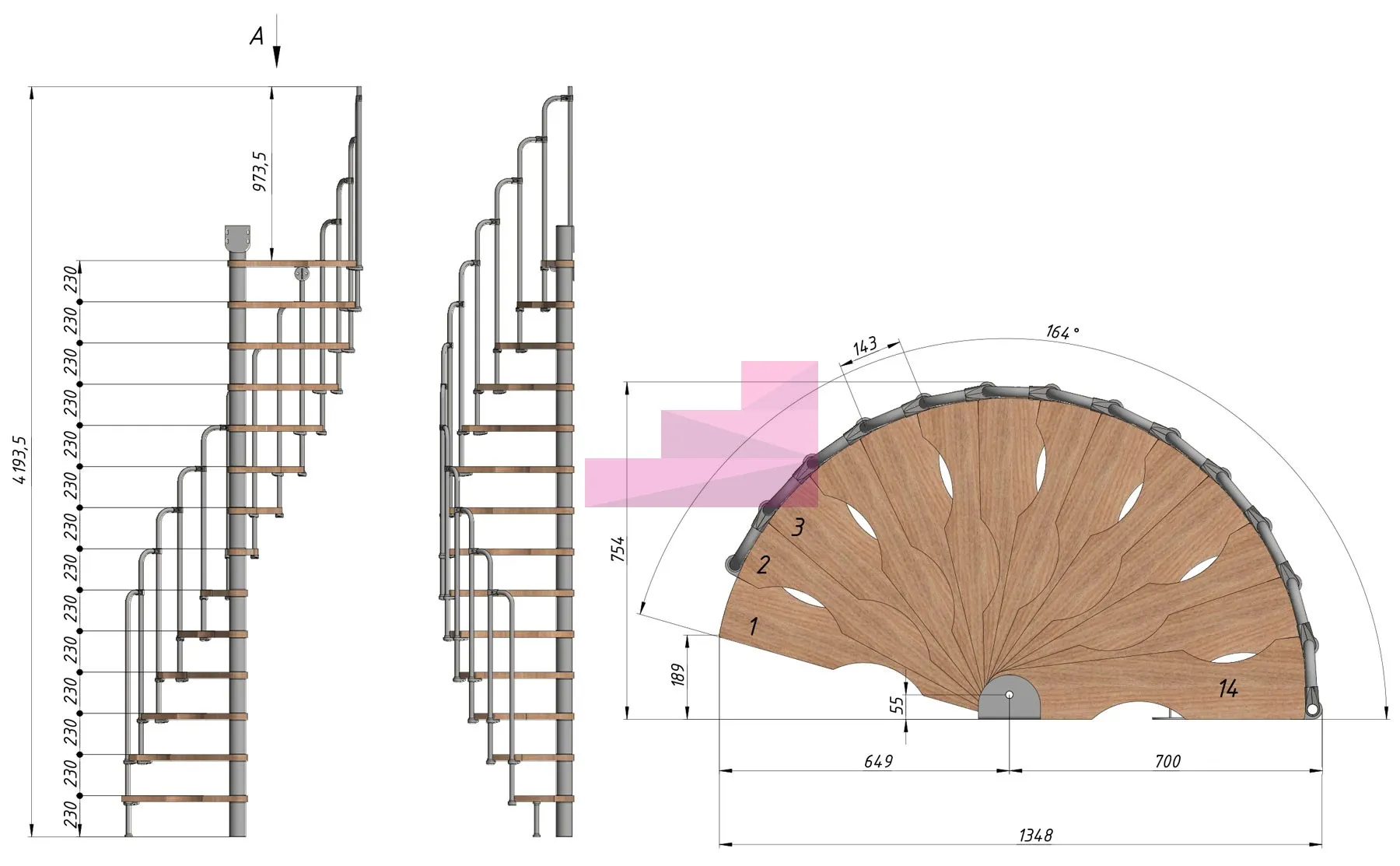 Диаметр 140см, 14 ступеней