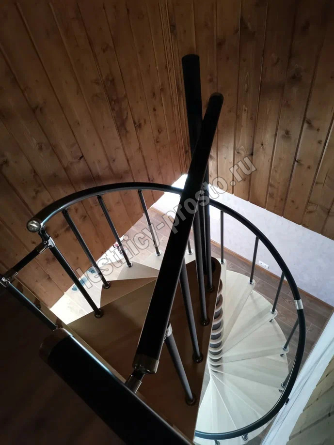 Стальные стойки Ф25мм (по одной на ступень) + ПВХ поручень Ф50.