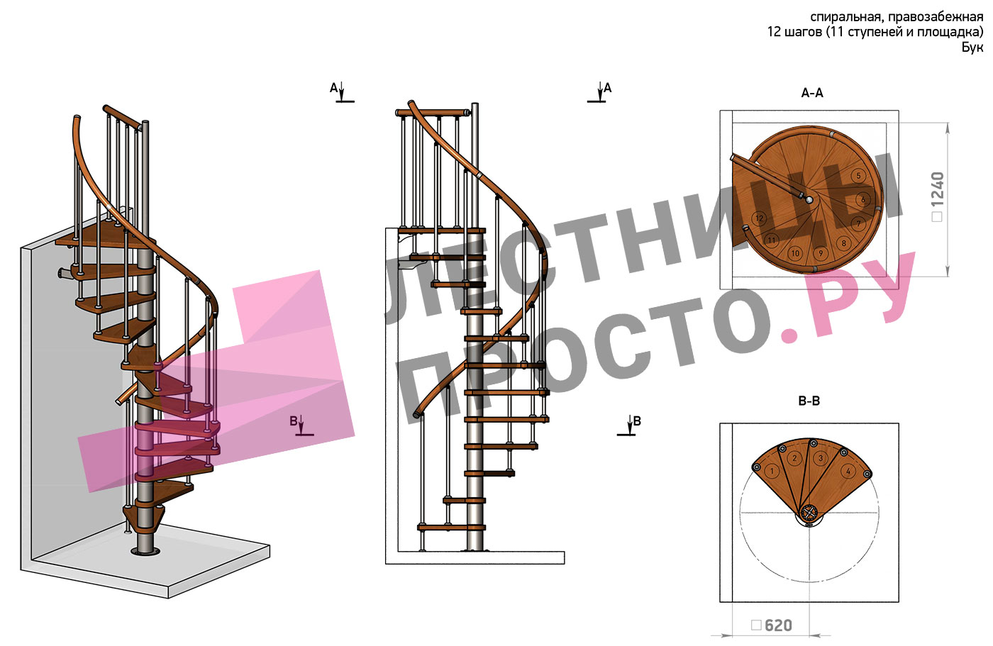 Решение об ориентации поворота принимается при сборке лестницы (комплект собирается и в правозабежную, и в левозабежную лестницу).
