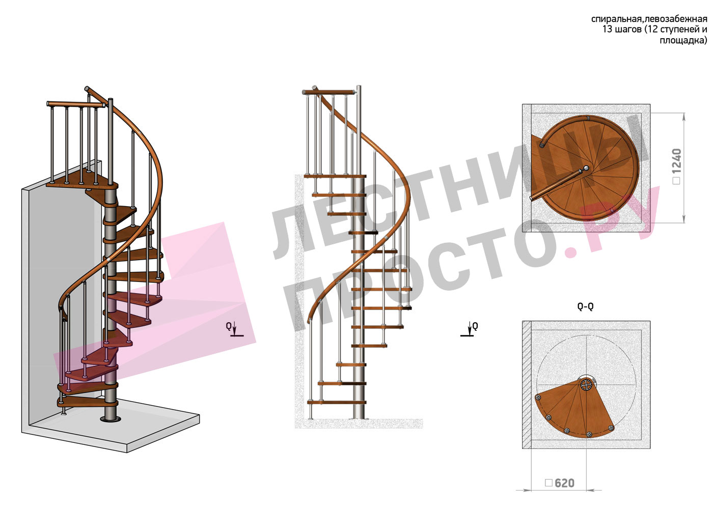 Винтовая лестница Prosto Spiral White D120см, h275.7-313,9 см