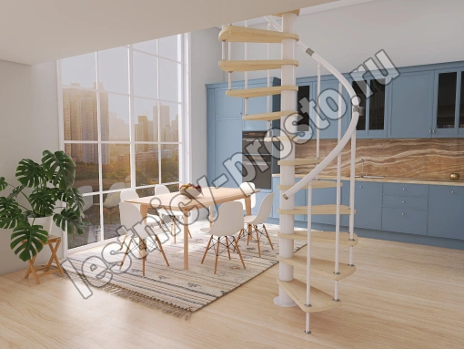 Винтовая лестница Prosto Spiral White D120см, h303.9-348,1 см, бук