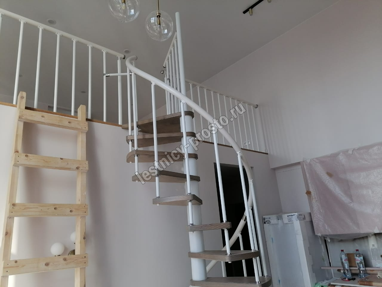 Винтовая лестница Prosto Spiral White D120см, h296.9-338.1 см