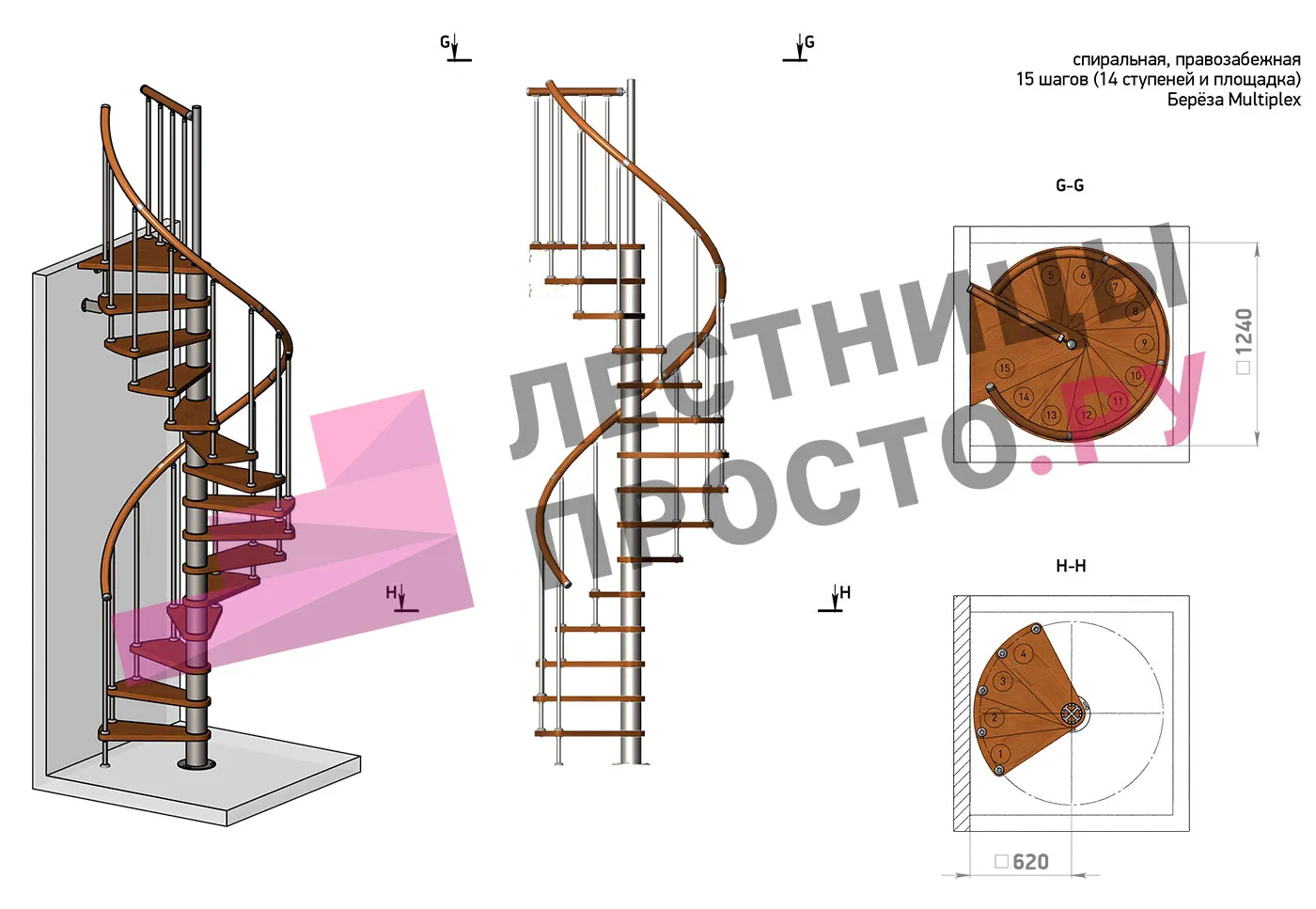 Высота лестницы 3182 - 3623 (14 ступеней) мм