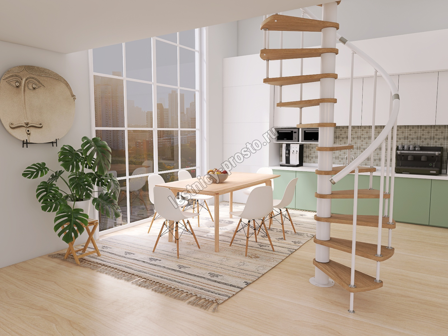 Винтовая лестница Prosto Spiral White D140см, h296.9-338.1 см