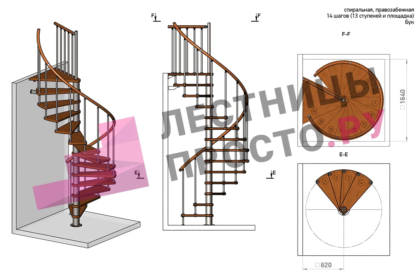 Винтовая лестница Prosto Spiral White D160см, h303.9-348,1 см, бук