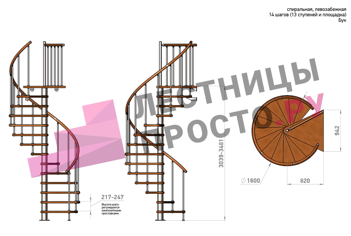 | Винтовая лестница Prosto Spiral White D140см, h325.7-369.8 см, бук |
