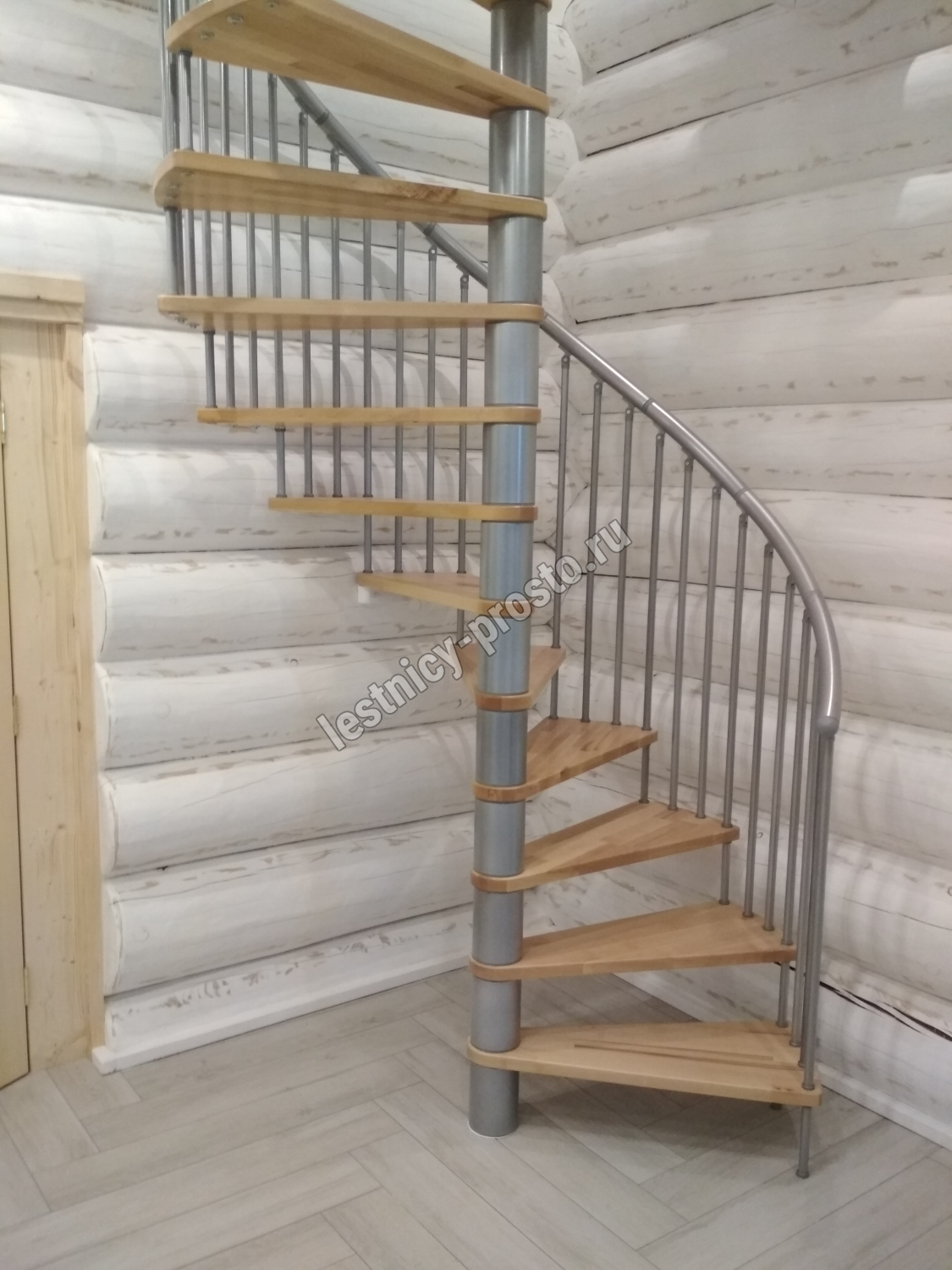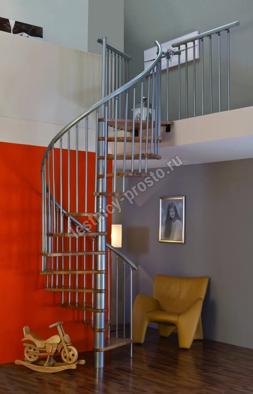 Винтовая лестница SPIRAL EFFECT d140 см, серебро, лакированный бук