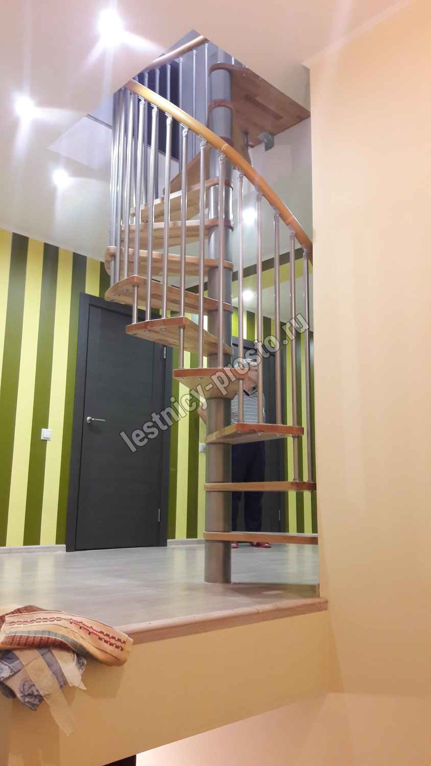 Винтовая лестница SPIRAL WOOD d120 см, серебро, лакированный бук