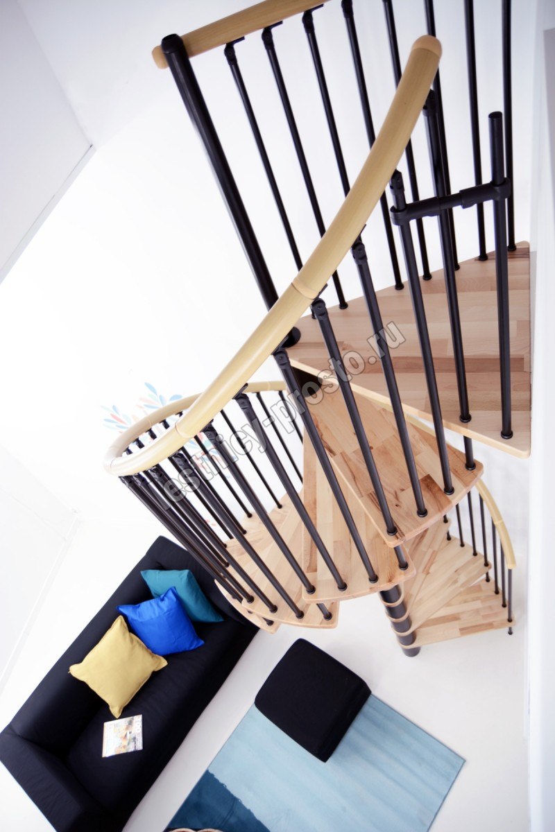 Лестница представлена в двух вариантах: с поворотом направо и с поворотом налево. Благодаря возможности регулировать высоту шага с помощью пластиковых вставок (входят в базовый комплект), высоту лестницы можно варьировать в пределах от 2860 до 3090 мм. Кроме того, купив дополнительную секцию для этой лестницы, можно поднять высоту до 3320 мм. Поручень изготовлен из массива бука в тон ступеням. Ступени и поручень покрыты износостойким защитным лаком.