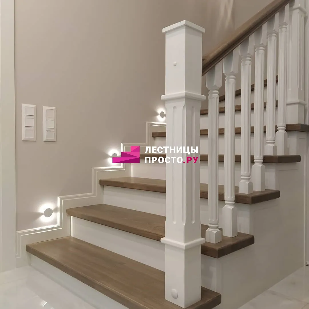 Лестница из дерева К-001М/ 7 левая с подступёнками