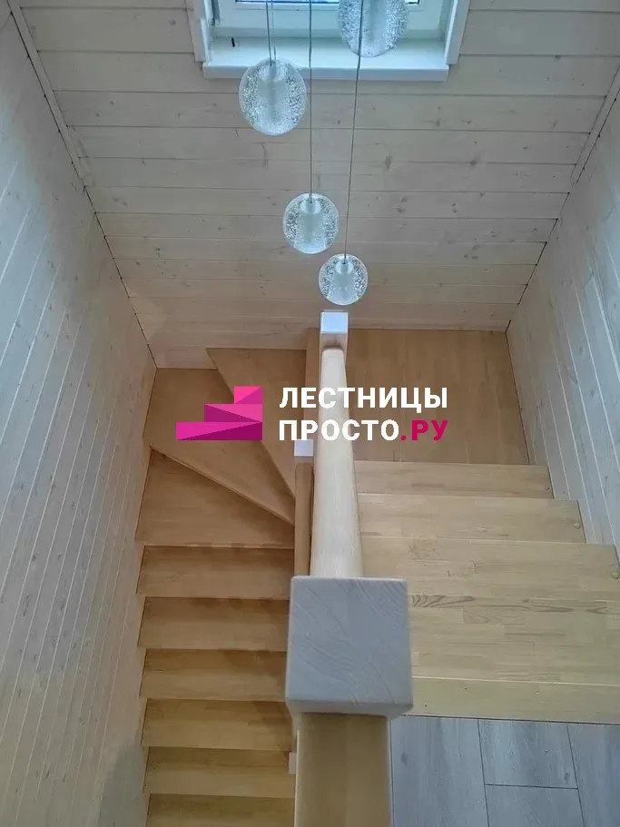 Г-образная лестница из сосны для частного дома ЛС-07/4