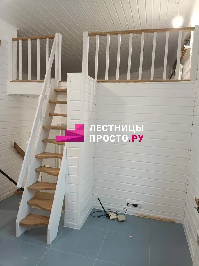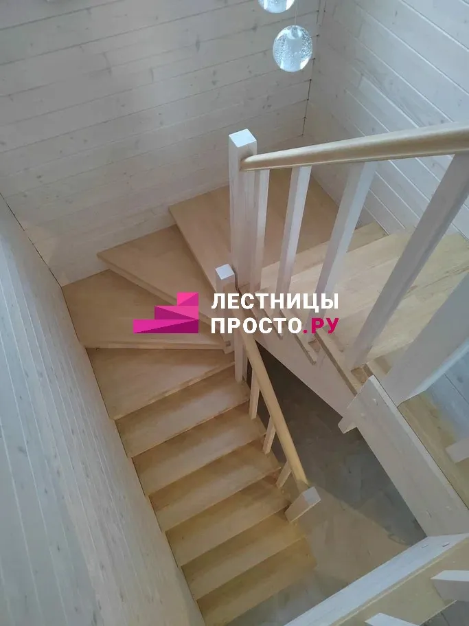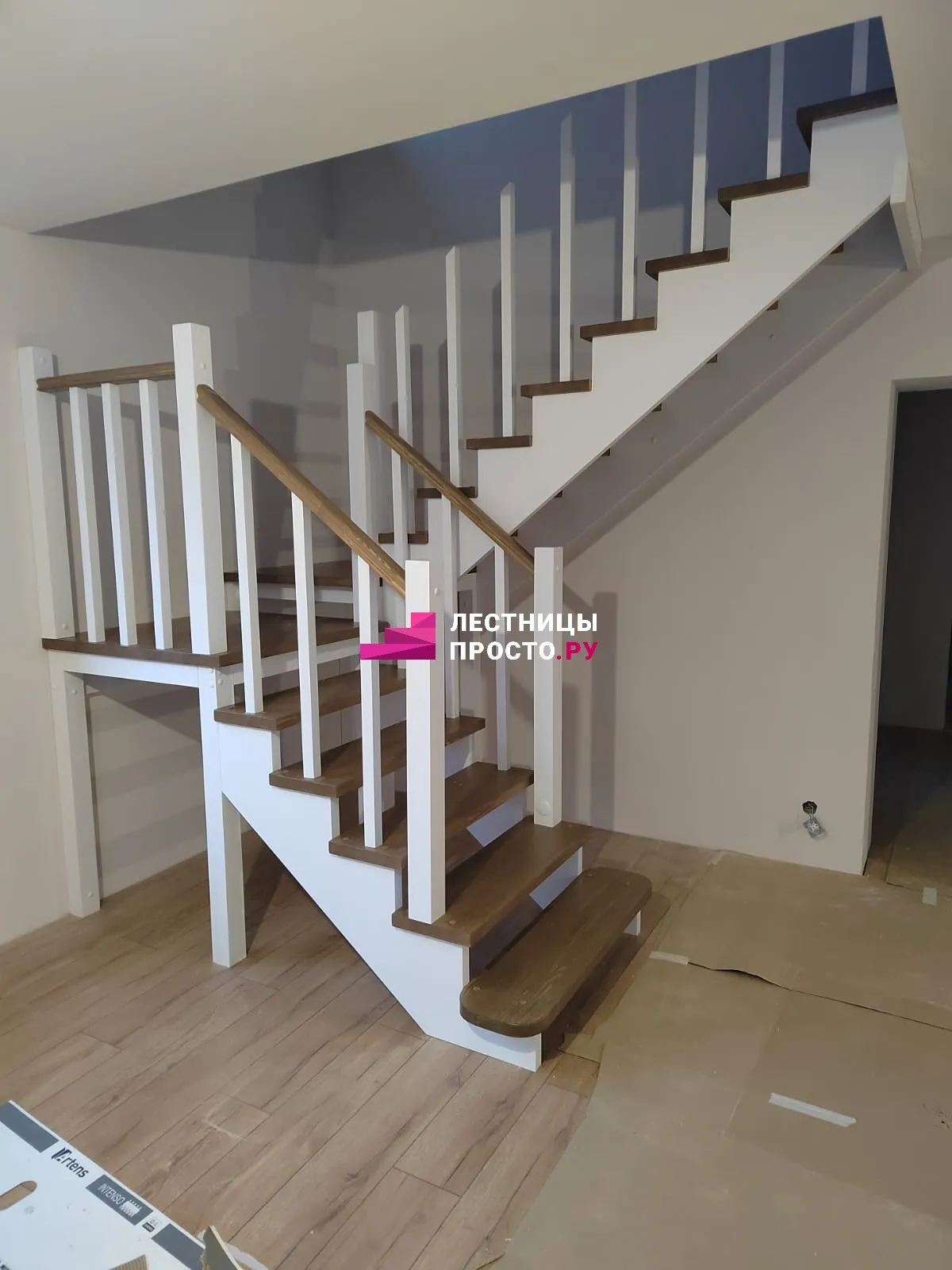 Лестница из сосны с поворотом и подступёнками для частного дома