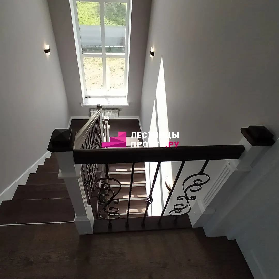 Ограждение Кованые стойки, перила - лиственница